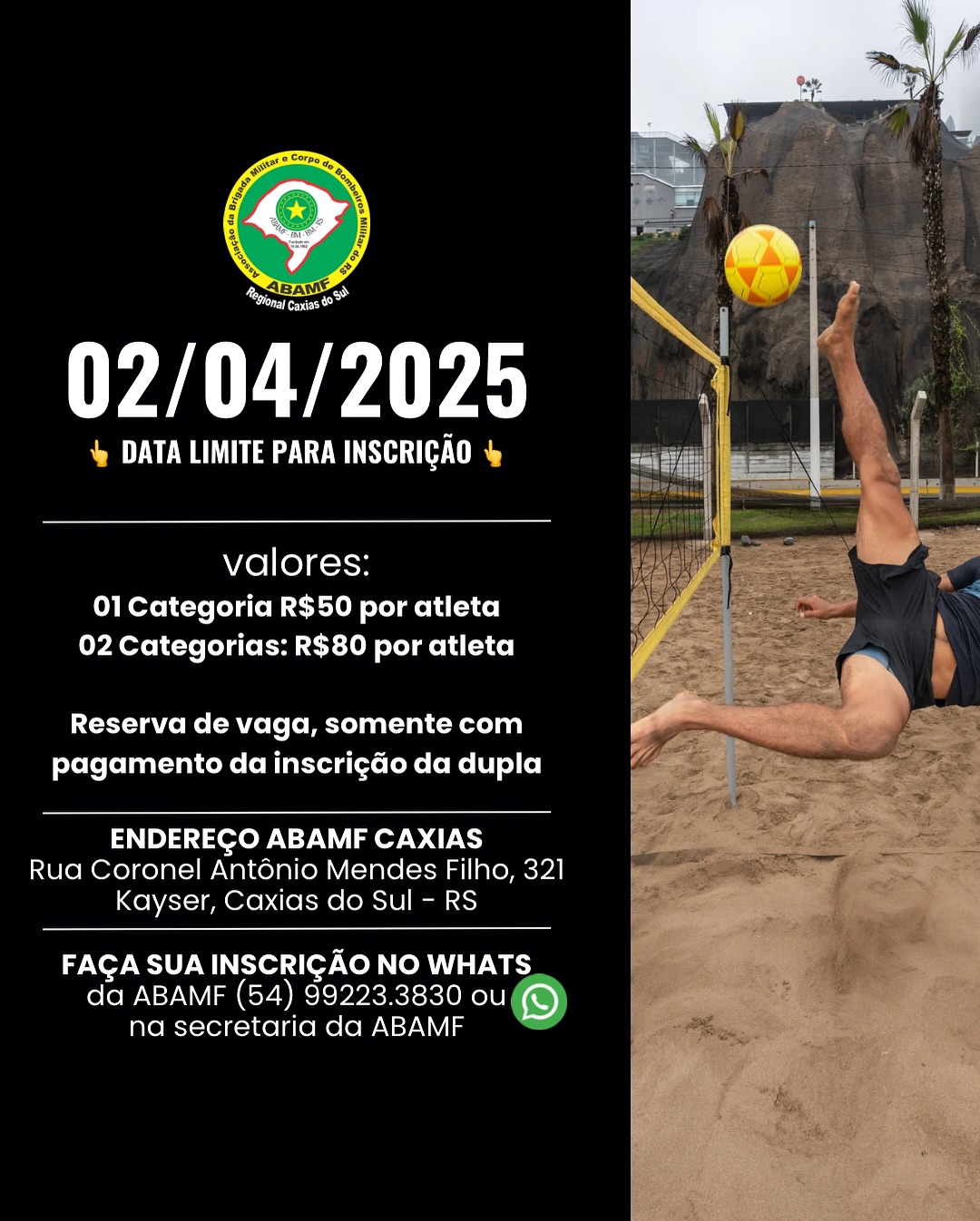 Faça sua inscrição pelo WhatsApp da ABAMF (54) 99223.3830 ou diretamente na secretaria da ABAMF. As vagas são limitadas, então não perca tempo!